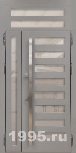 Полуторная дверь с фрамугой, остеклением, хромированной длинной ручкой (терморазрыв) Арт: 896