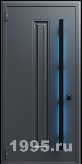 Стальная дверь с металлофиленкой, длинной ручкой с подсветкой и темно-серым порошковым окрашиванием RAL 7021 (тип №1) Арт: 849