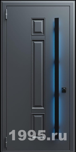 Стальная дверь с металлофиленкой, длинной ручкой с подсветкой и темно-серым порошковым окрашиванием RAL 7021 (тип №2) Арт: 850