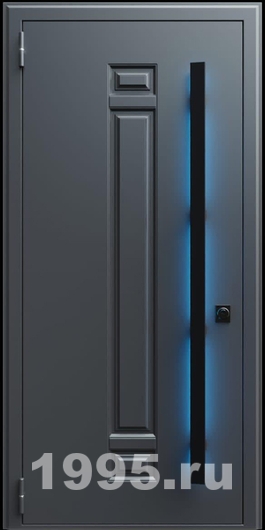 Стальная дверь с металлофиленкой, длинной ручкой с подсветкой и темно-серым порошковым окрашиванием RAL 7021 (тип №9) Арт: 857