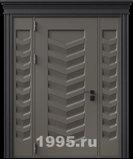 Стальная дверь с металлофиленкой, вставками по бокам, карнизом и порошковым покрытием RAL 7022 (тип №8) Арт: 889