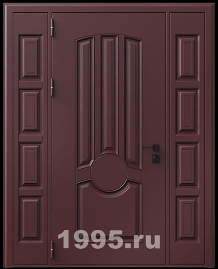 Стальная трехконтурная дверь с металлофиленкой, вставками по бокам и порошковым напылением RAL 3007 (тип №3) Арт: 863