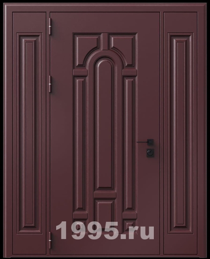 Стальная трехконтурная дверь с металлофиленкой, вставками по бокам и порошковым напылением RAL 3007 (тип №4) Арт: 864