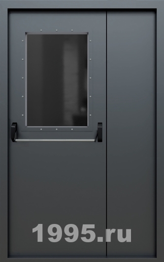 Полуторная противопожарная дверь со стеклопакетом и ручкой Антипаника №31 - ДМПС 2