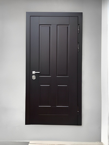 Двустворчатая стальная дверь с наборным МДФ окрас по RAL